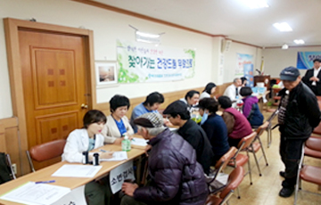 16개 구(군) 보건소와 연계사업으로 의료취약계층을 대상으로 현장방문 무료진료를 실시하여 지역주민 건강증진 및 의료안전망 역할 담당을 하기 위한 사업입니다.